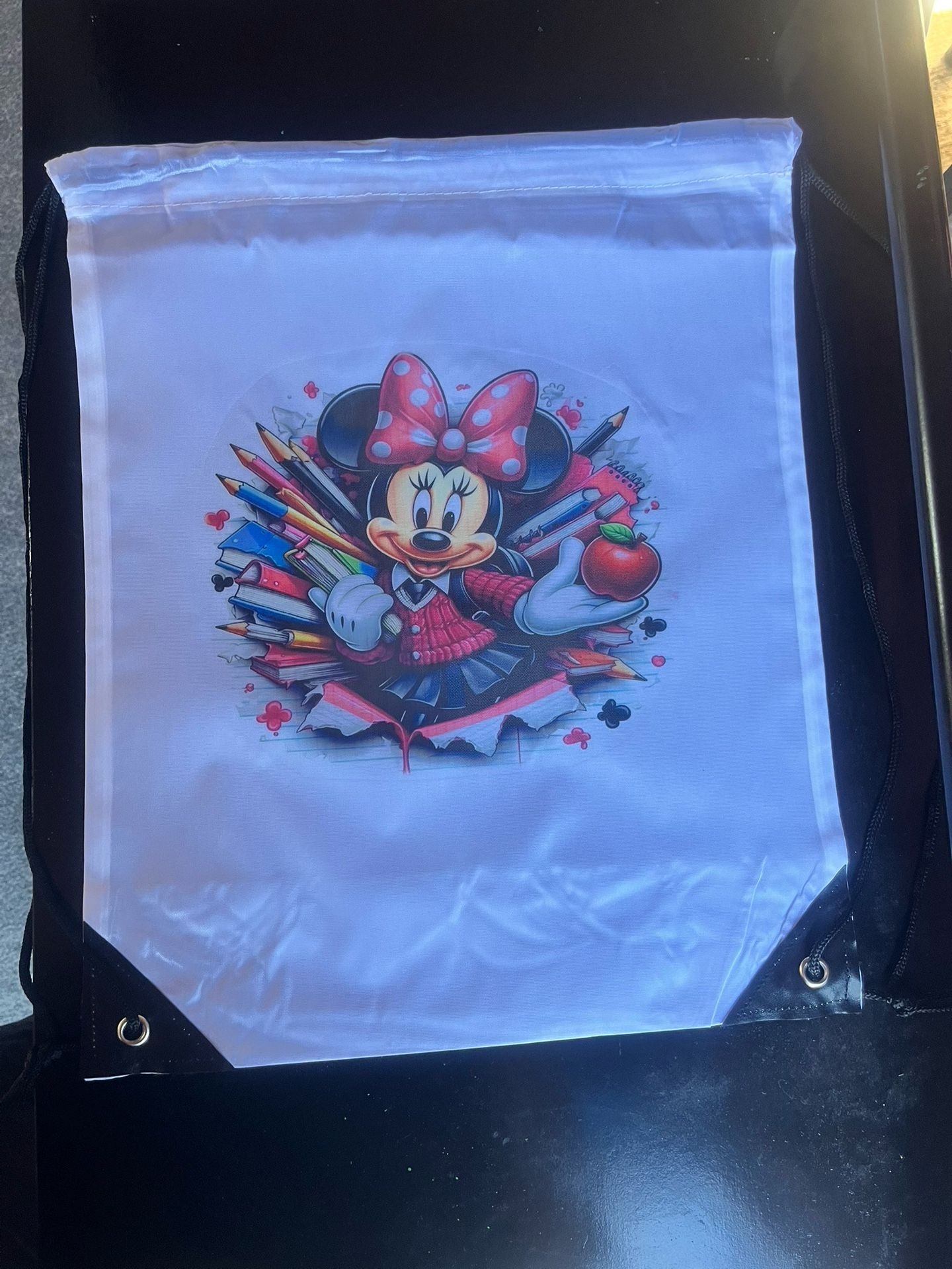 Drawstring Backpack Cinch Bag, lightweight Polyester (White) * 16.5 inches in length and 13.3 inches in width, Pick up only Riverside Disney Minnie Mouse school
