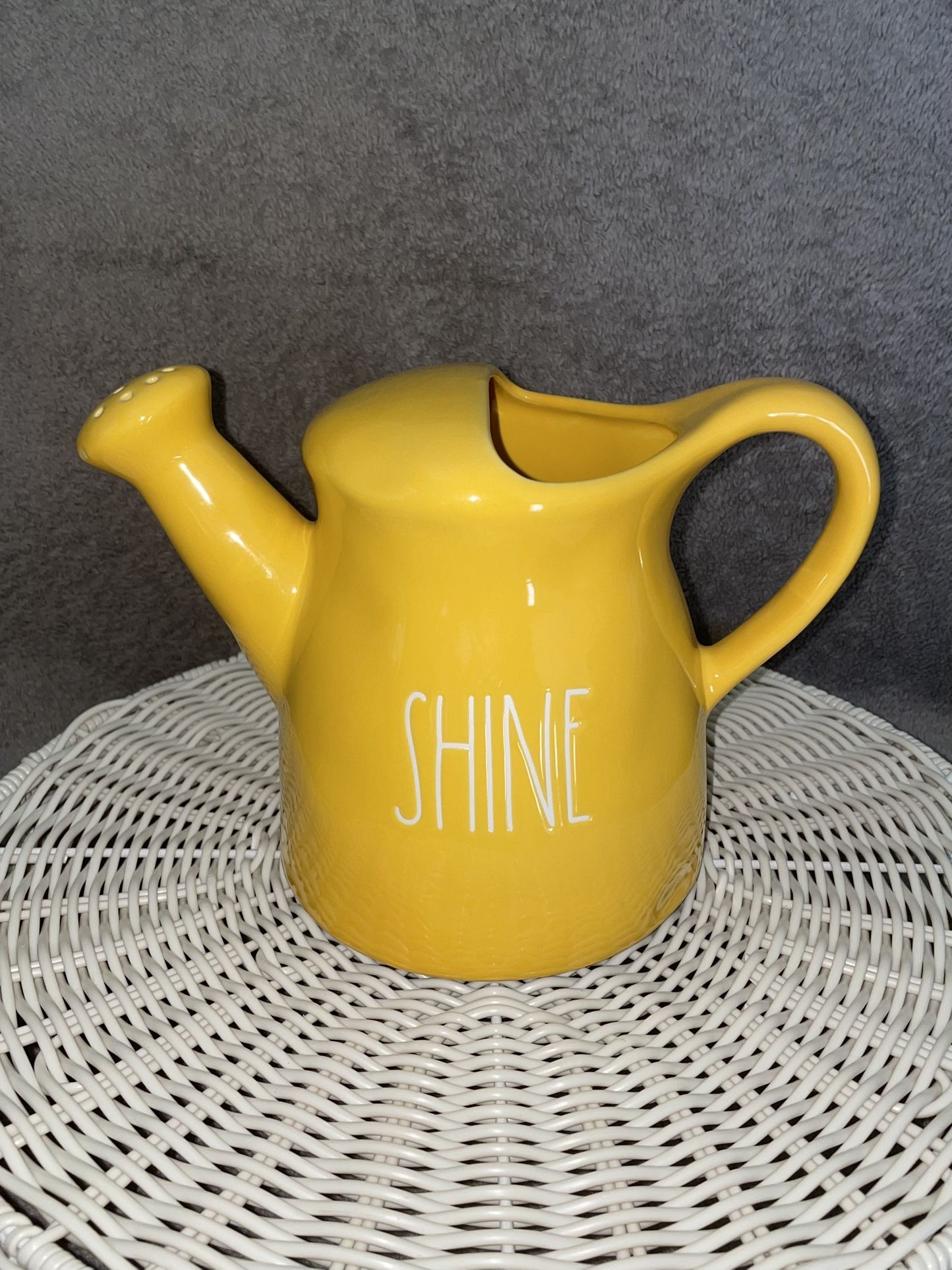 New, yellow, ceramic “SHINE” watering can. No cracks, chips or discoloration. 6.5” H x 5.75” W/Diameter at base Local pick up preferred. Cash only.
