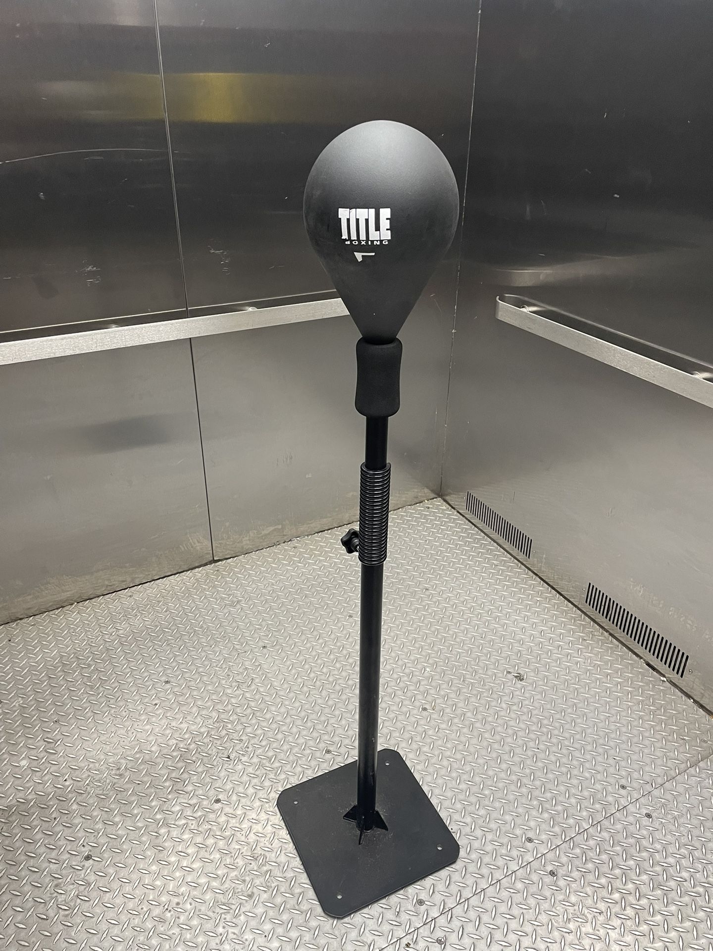 Floor mounted speed bag. Adjustable height. Spring action coil. Must be attached to concrete surface. Good for a commercial / home gym.