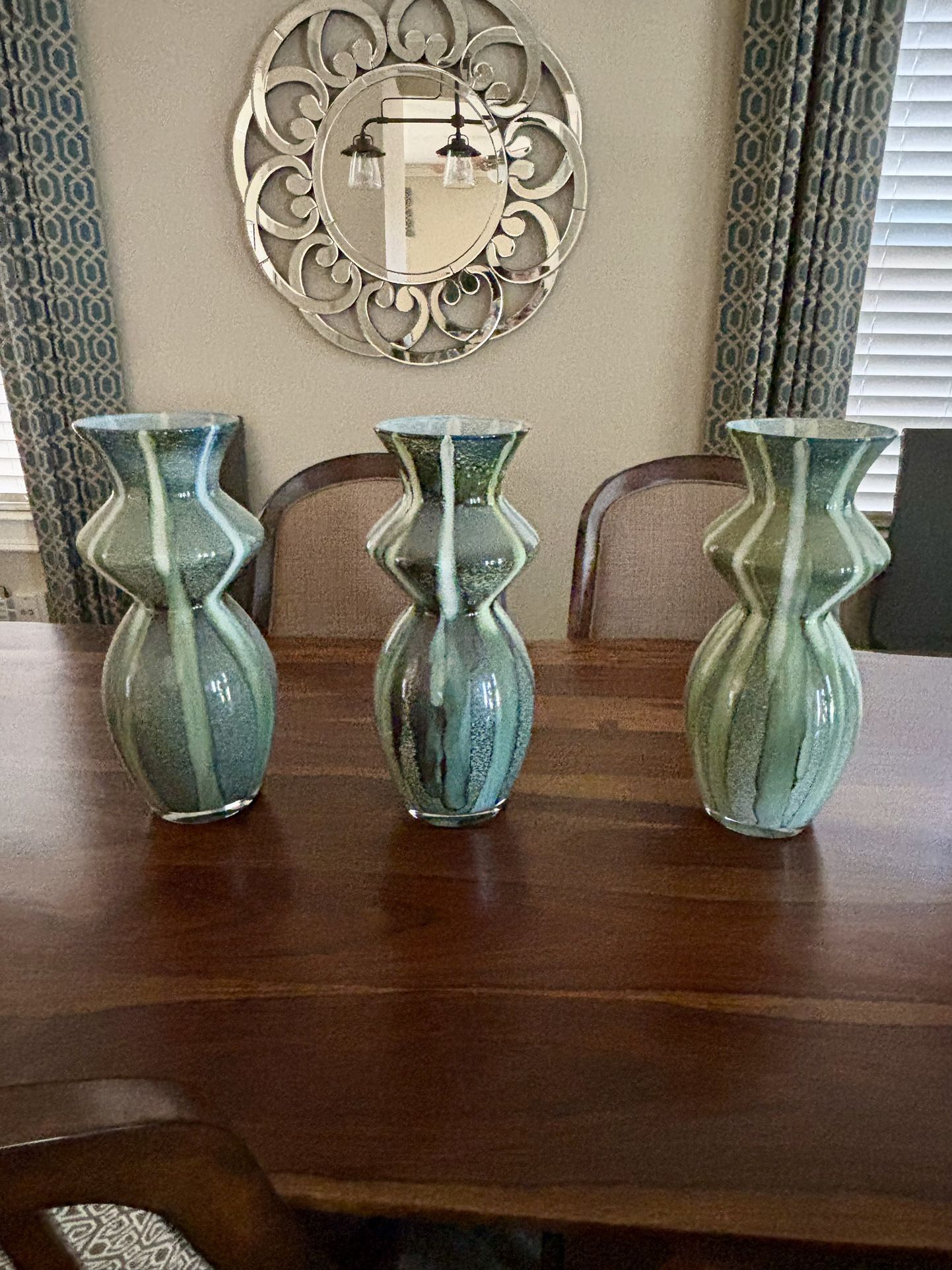 Three green decorative vases. Local pick up Central Austin.