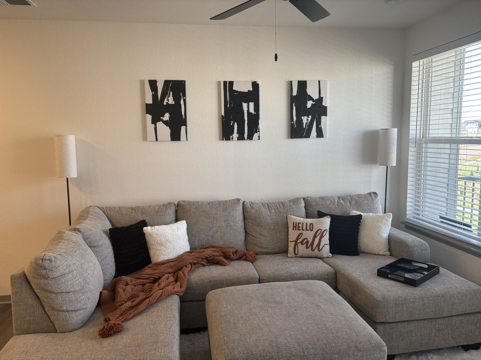 Selling my gray sectional w/ottoman!!! Couch was bought July 2024, only used for a few months. Very comfy. Need it picked up by 10/20. $900 for both the couch and ottoman, OBO!! (pillows not included)