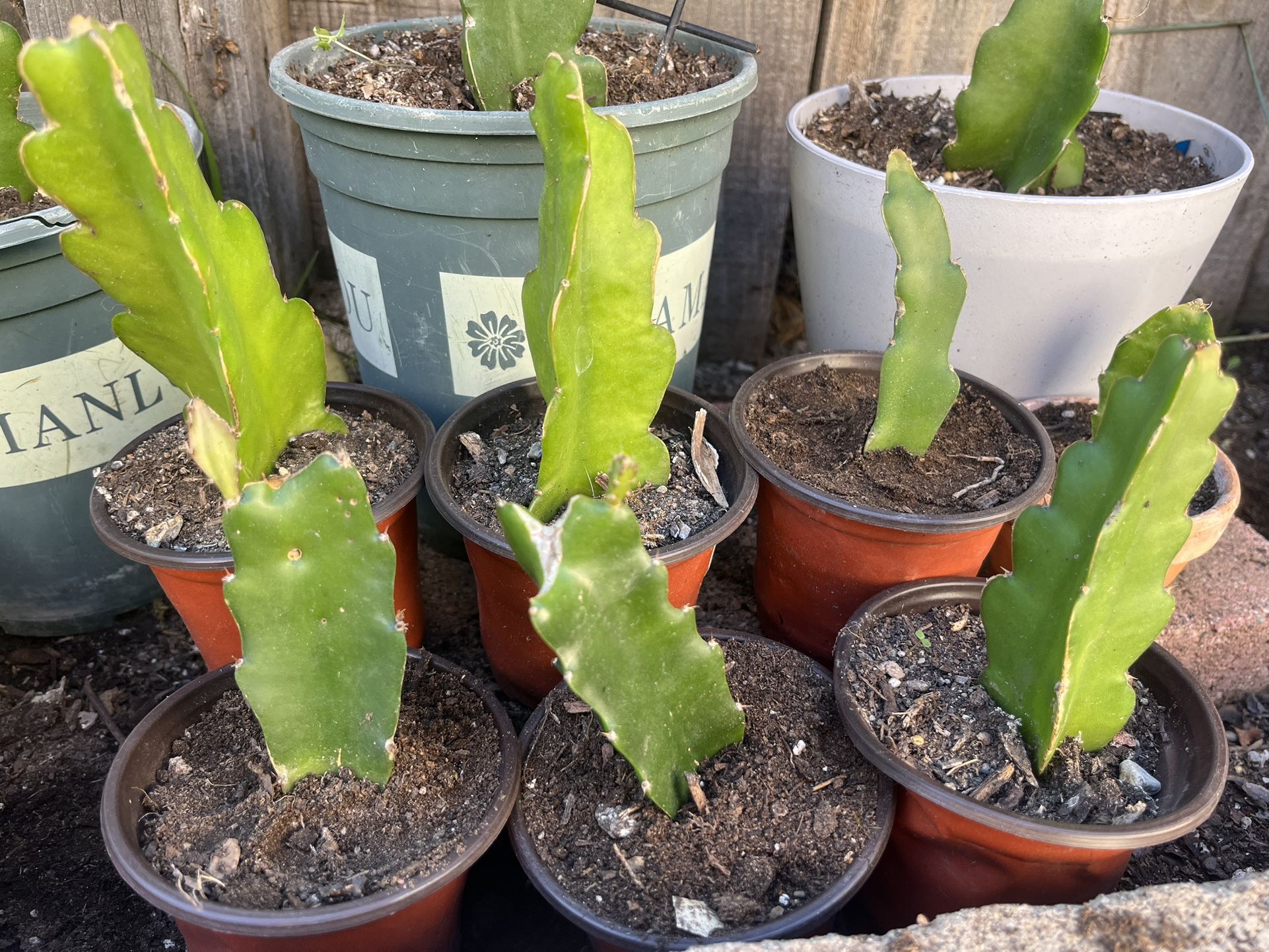 I have 5 small, 4 medium and 4 large, fully rooted dragon fruit plant starter kits. Extremely beginner friendly. Each kit comes with one plant, a liter size bottle of organic plant fertilizer, and careful care instructions good for the first two years of your plants life. $15/ small, $20 / medium, $25/large Plants in back row of second photo are $15 each, all ready for new pots or in ground planting Pick up in Chula Vista, delivery or meet ups anywhere in San Diego South of the 8 freeway