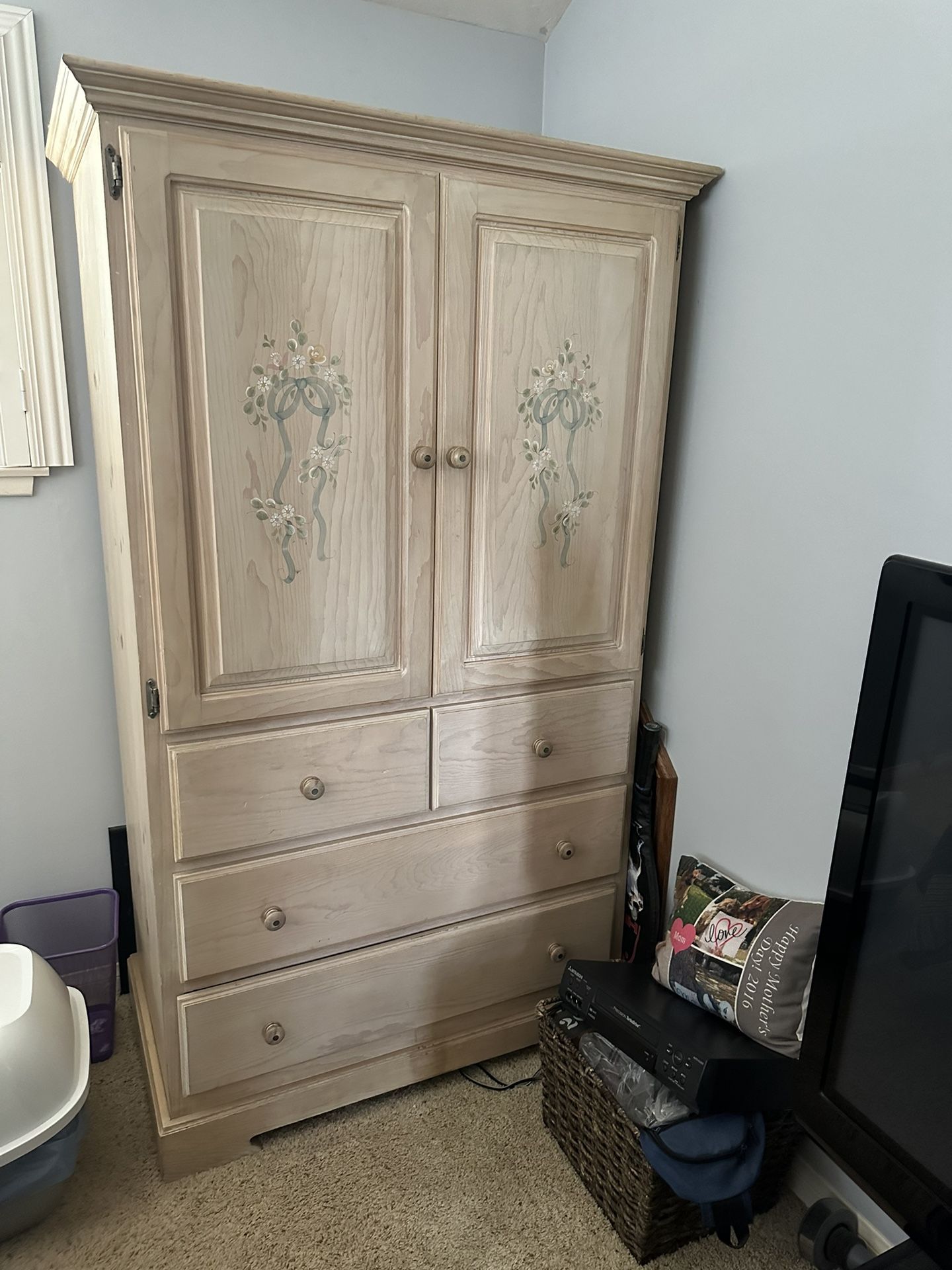 Armoire, floor mirror, side table