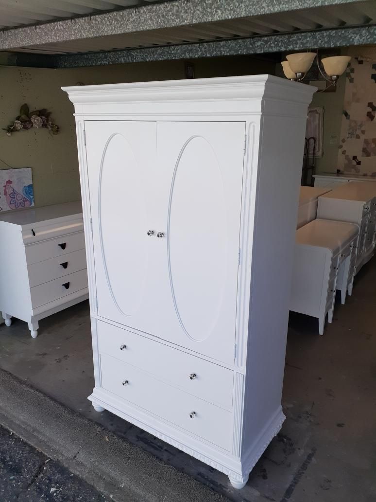 Just Listed! Completely refurbished and freshly painted solid wood armoire. Professionally Painted with an airless sprayer with 3 coats of quality Behr Ultra Premium Paint with primer, scuff defense and stainblocker. Has super cute new knobs and a clothing rod for hanging clothes. Tons of storage! Great for clothing, linens, office, any place you need extra organizing space! Dimensions are 42 inches wide, 21 inches deep and 72 inches tall. $595 Located in Nipomo, if the ad is still posted then the armoire is still available.