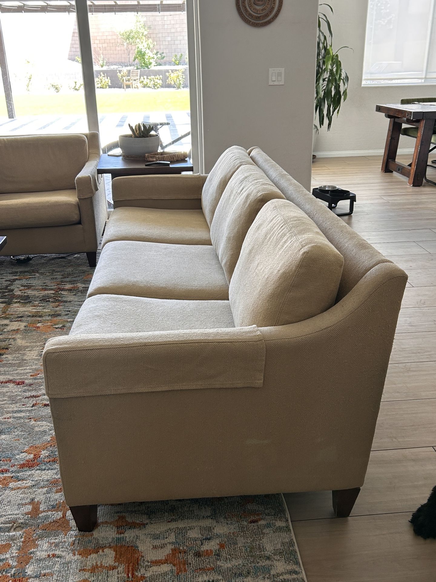 Purchased for $9,000 each, Selling as set for $480 OBO, individually $260 ea OBO 7’9”x3’x2’7” Tan/Beige Herringbone Upholstery 100% Machine Washable and Removable Covers 100% Down Cushioning One owner, Non-Smoking, Pet and Childproof Bring a friend for pickup!