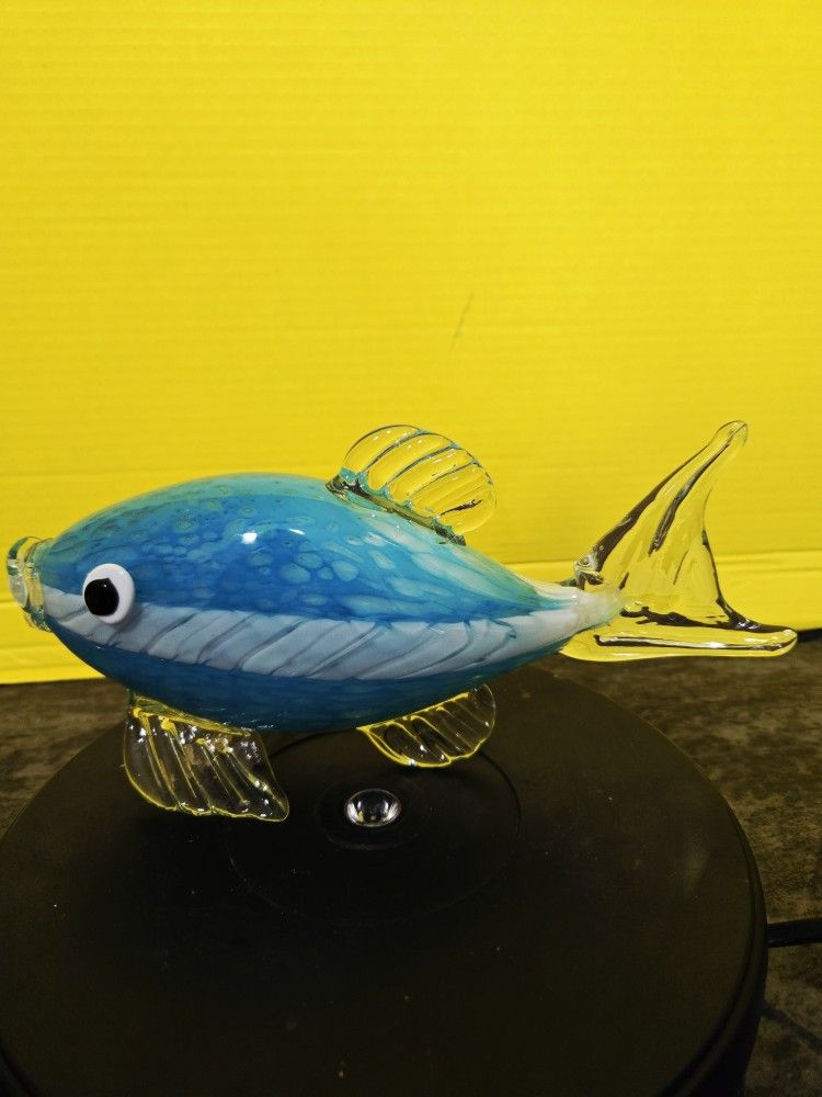 Vintage Blue Glass Fish Handblown Art Glass Coastal Decor 11"×6"