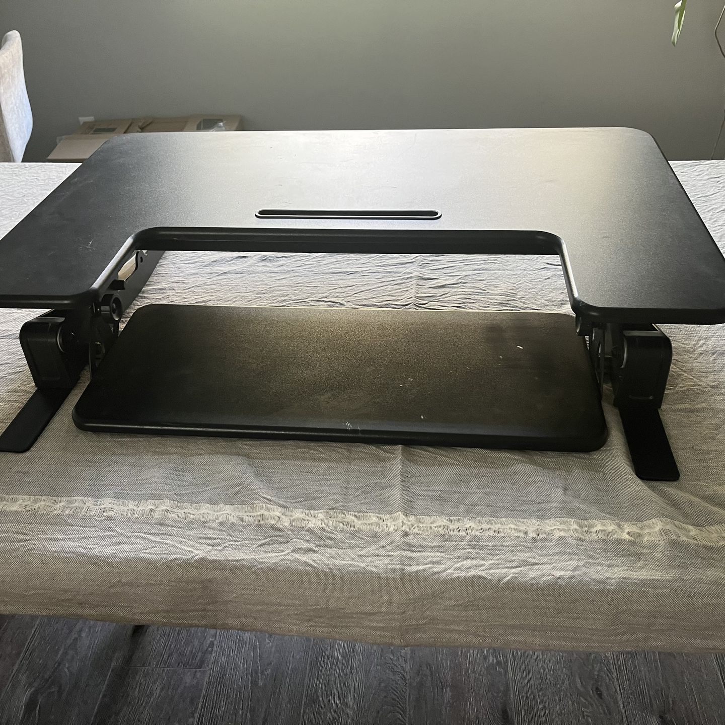 170$ or OBO This a a desk riser that’s sits on a existing desk! It’s used and have some marker stains but other than that it is in perfect condition. From looks to mechanics The lower “shelve” where the keyboard goes swivels And from flat to all the way up you can choose how high or low you want it!
