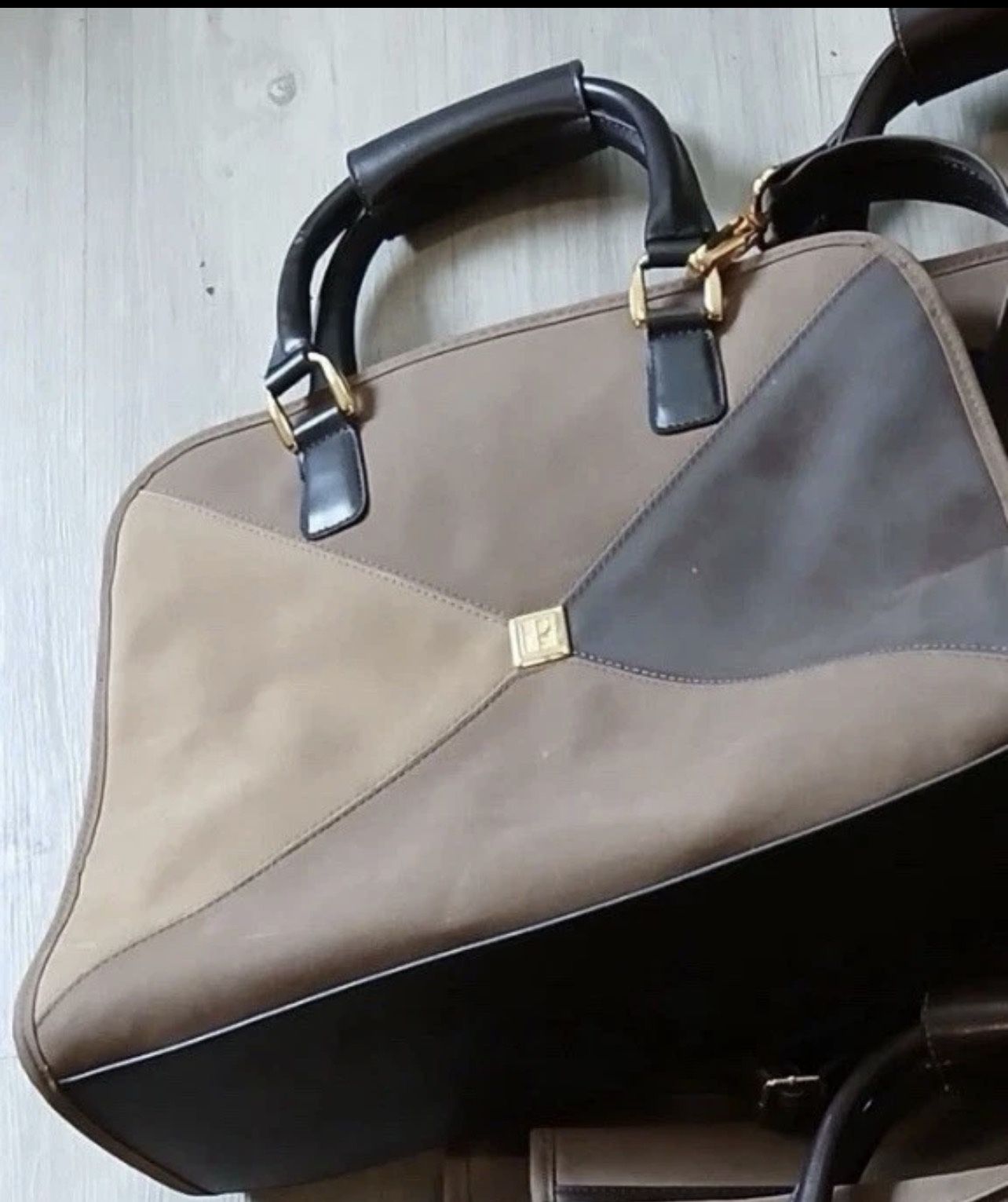 Step out in timeless style with this authentic vintage Diane von Furstenberg travel bag. This piece features a sophisticated three-toned brown suede construction accented by rich leather trim and elegant gold-tone hardware. Whether you're using it as a professional messenger bag or a stylish weekend carry-on, its spacious design and versatile carrying options (top handles or detachable shoulder strap) make it a functional favorite. Condition Details: Overall: Solid pre-owned condition with plenty of life left. Exterior: The suede shows light, natural wear consistent with vintage items (minor scuffs/nap variations), adding to its character. Interior: Clean with no major stains or odors. Hardware: Zippers and clasps are fully functional.