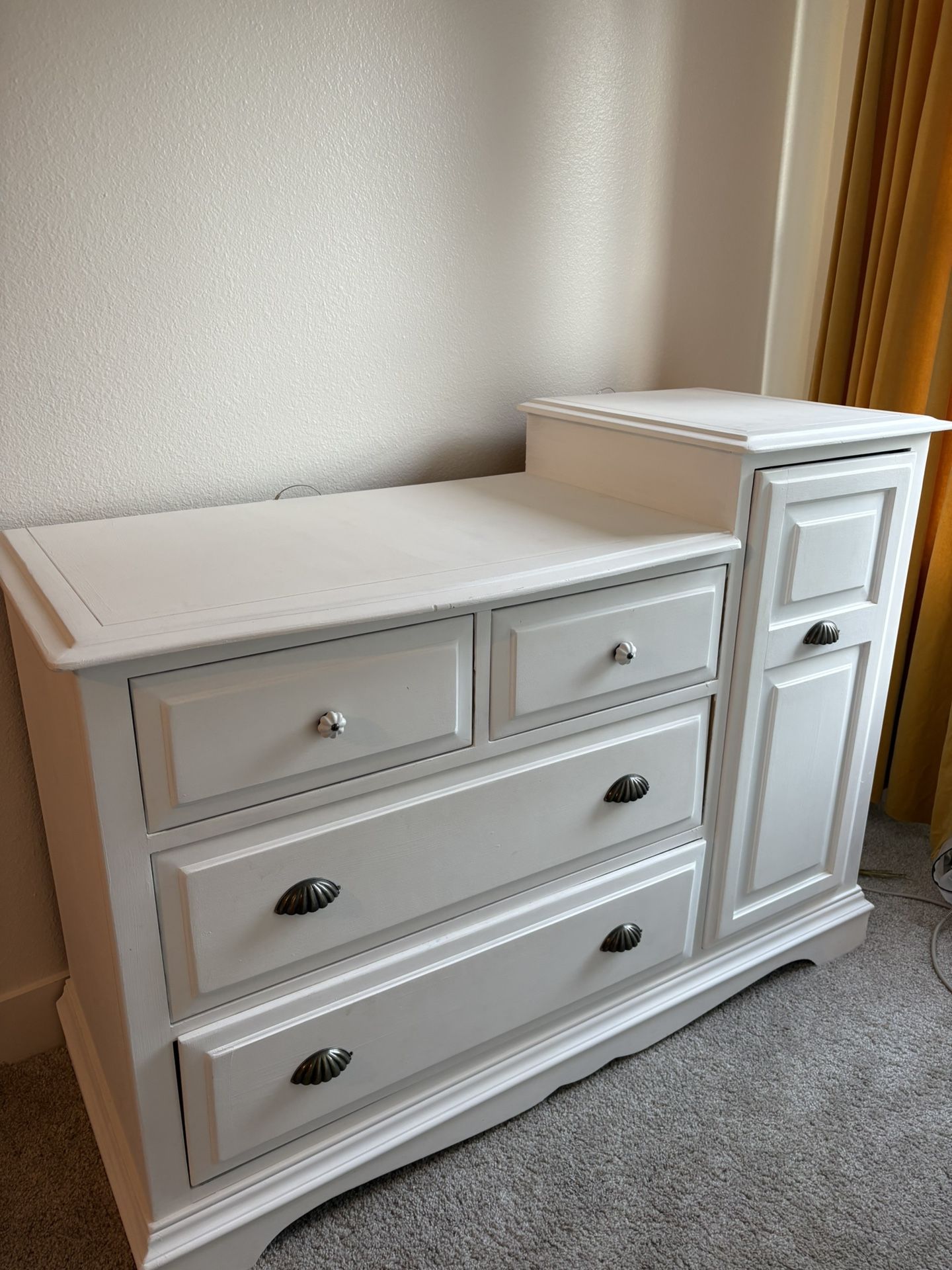 Cute white dresser with the option to be a changing table/dresser combo. 51” L, 20” W, 32” H