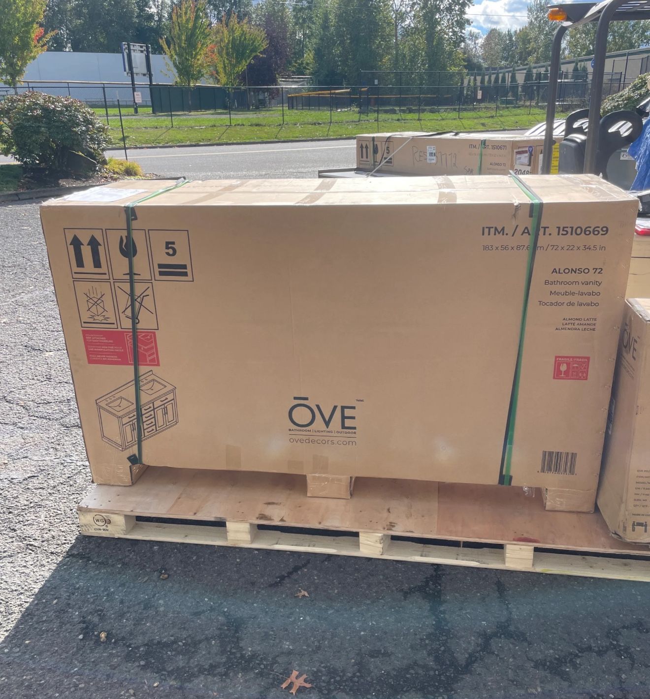 Brand new OVE Alonso 72” Bathroom vanity It’s still in the box Bought from Costco OVE Decors Alonso Bath Vanity in Brown Features: White Engineered Stone Countertop Solid Wood Cabinet Construction Soft-close Door Hinges and Drawer Glides Dimensions (L × W × H): 72 in. x 22.05 in. x 34.5 in. (183 cm x 56 cm x 87.6 cm) Cash only