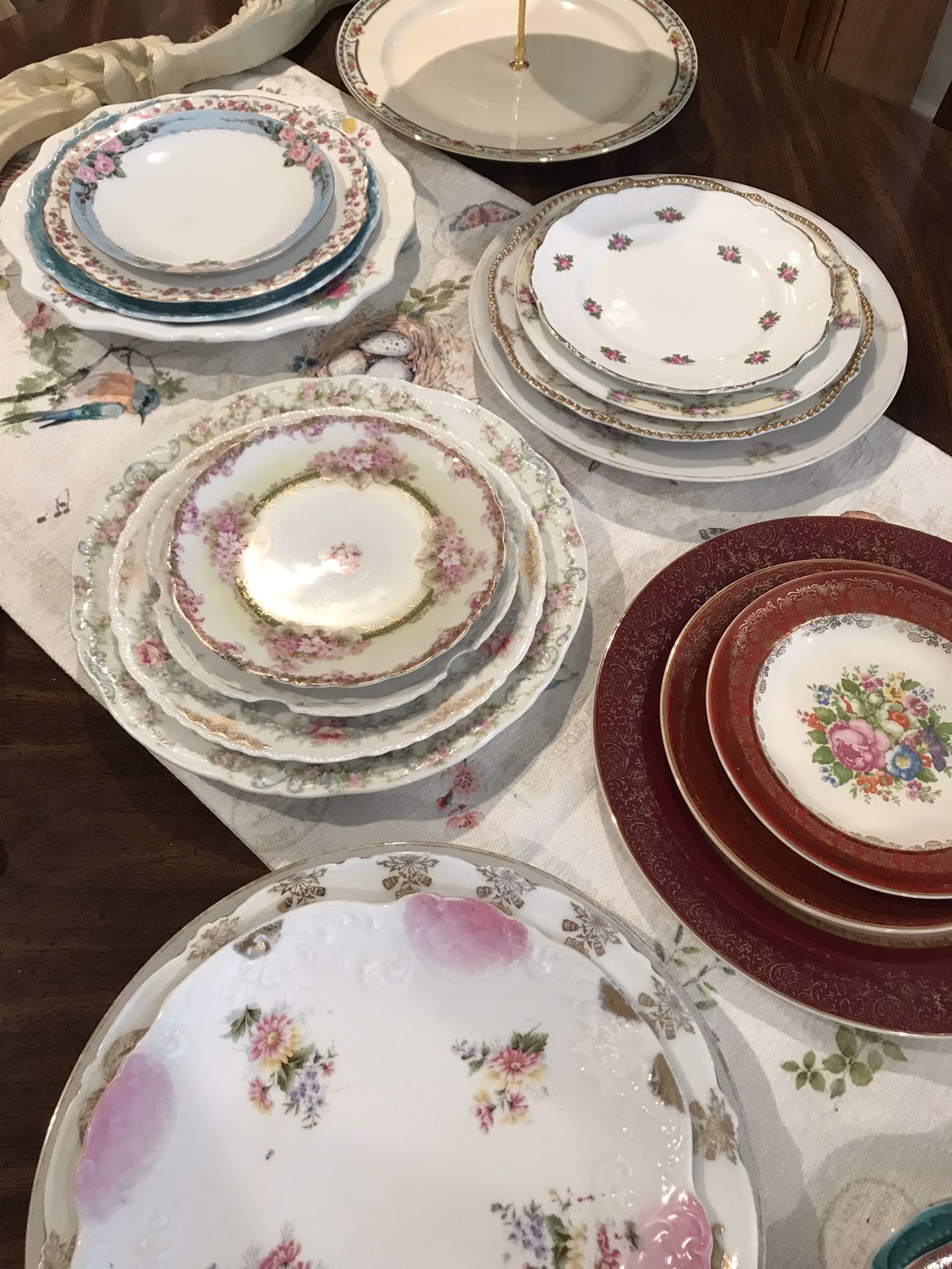Vintage teacups, 3-tier dessert stands, teapots, linens, silver platters, crystal stemware, milk glass and lots more .. everything is sterilized washed clean and ready to use.. perfect for any special event.. please see my other listings for more photos .. prices start at $1 each and up ..