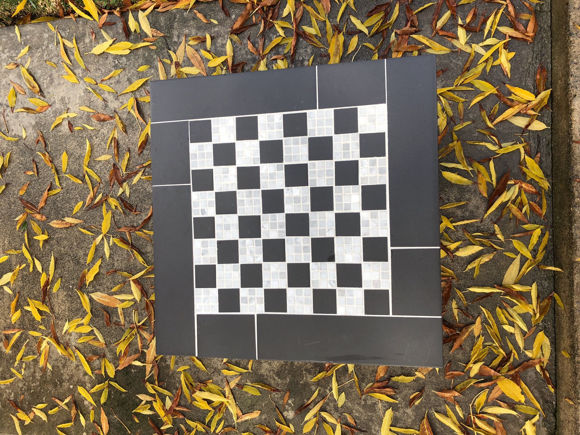 Home made chess/checkers board. Tile on tile ( very heavy and sturdy )