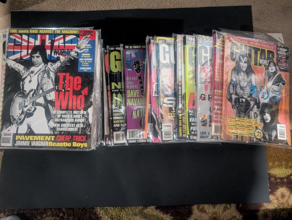 30 Magazines Guitar World and Guitar. Most seem fairly good condition. Some have some wear to them considering their age. 140 Firm. Good Deal