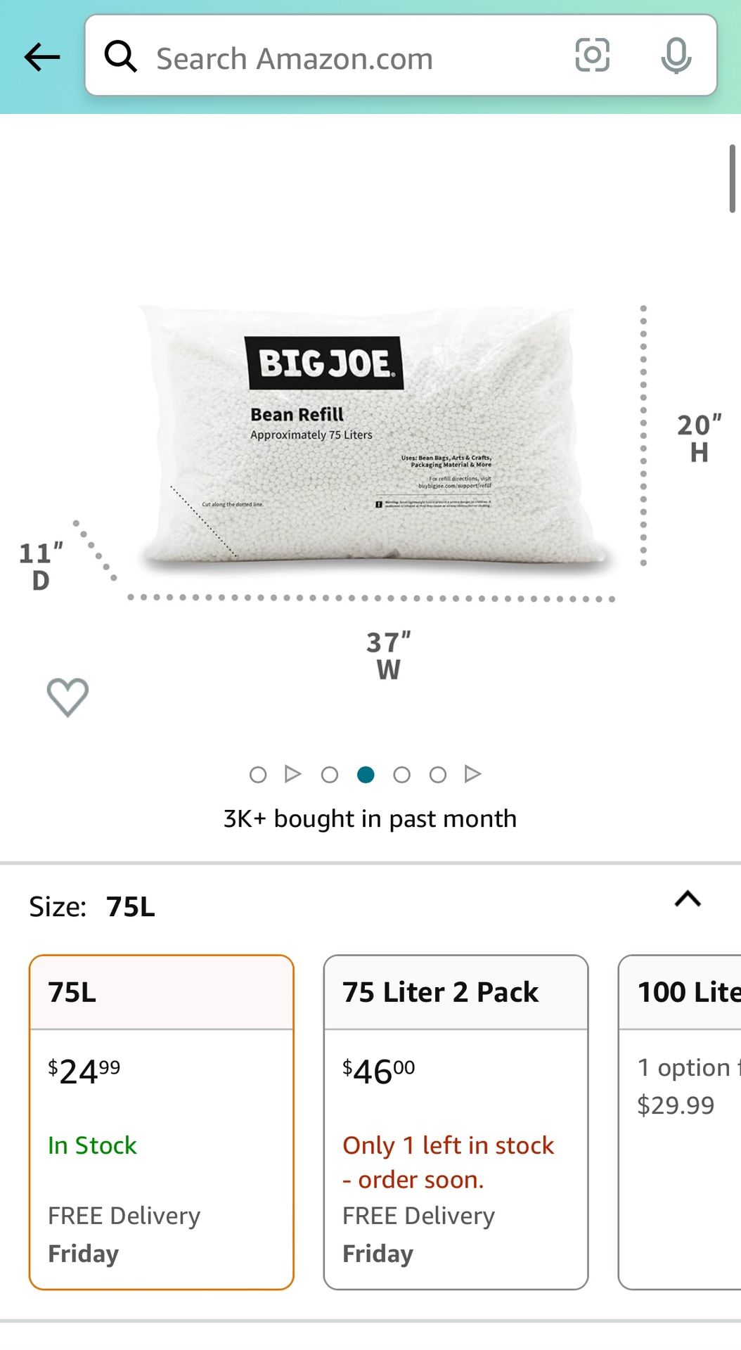 About this item Polystyrene IT'S THE INSIDE THAT MATTERS: Give your bean chair or pool float some love with Big Joe rejuvenating polystyrene beans. They are lightweight and 100% recyclable! EASY TO REFILL: Cut along the provided dotted line of the refill bag and simply pour BRING YOUR BIG JOE BACK TO LIFE: For an approximate amount to refill, a small chair or pool float may need 2-3 bags, while larger ones may need 3-4 SIZING: Available in a two-pack HOME GROWN: Popped right here in the USA.