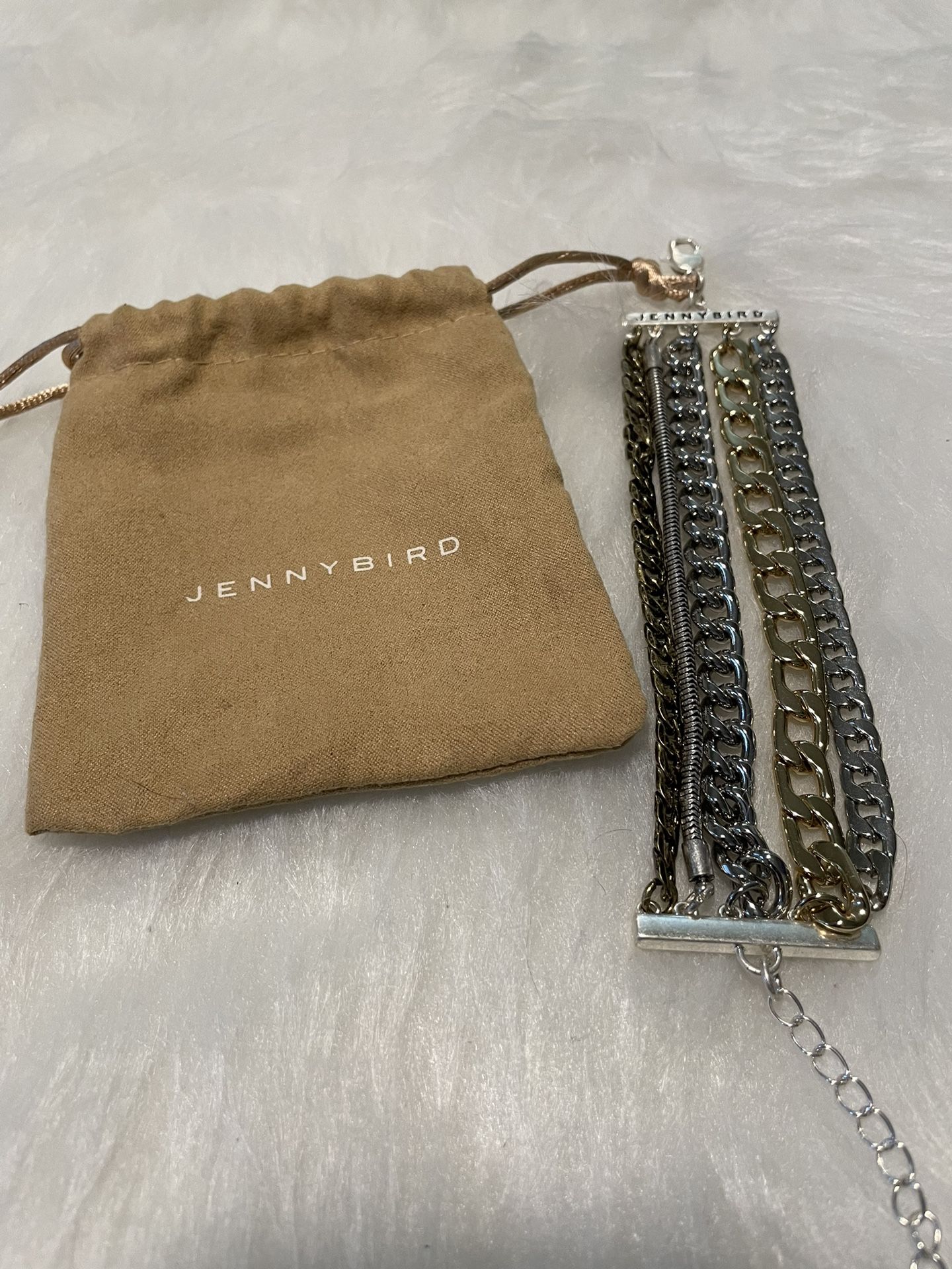Silver and gold Come with dust bag Lobster claw closure Never been worn