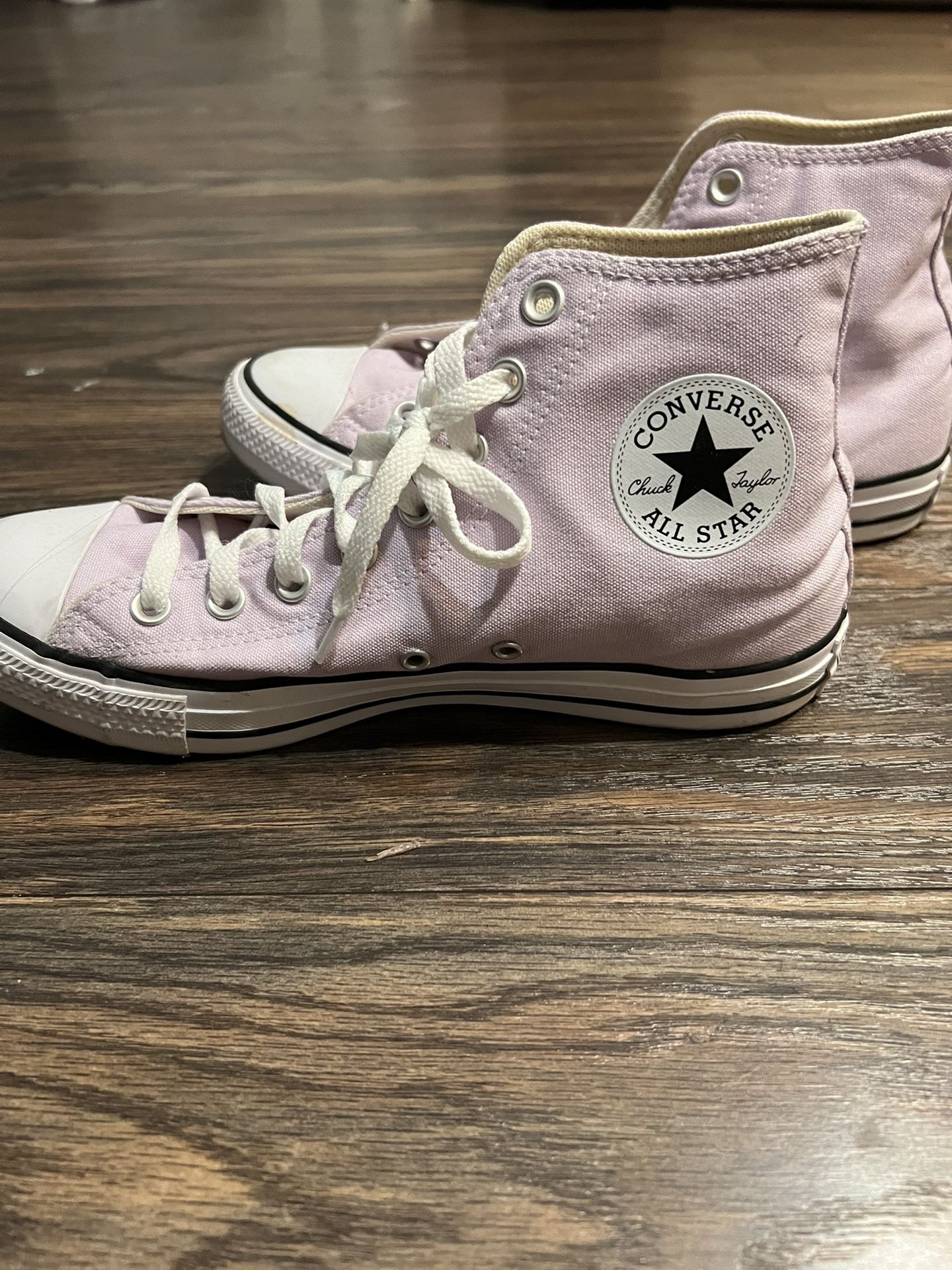Women’s size 10 converse high top. My daughter may have worn them once or twice MAYBE if that. Smoke and pet free home