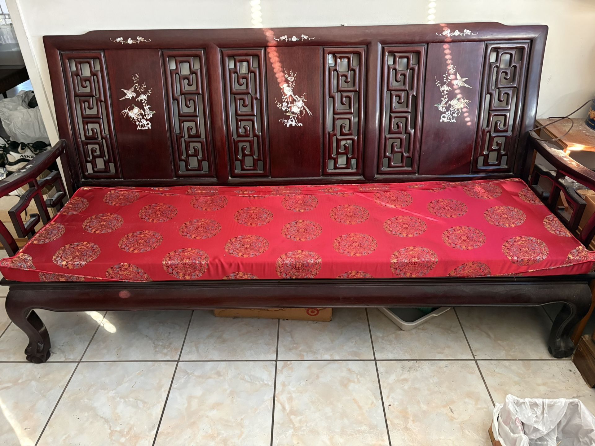 Chinese Rosewood Couch with cushion Very good condition 72” w x 27”d