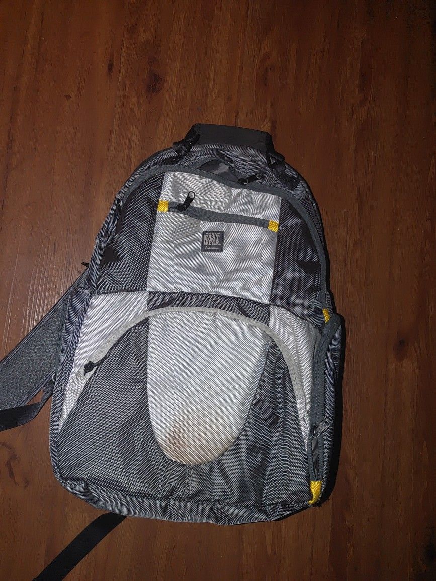 Hiking backpack it has a stain on it but not bad for the price. It is great for theme parks! Asking $10