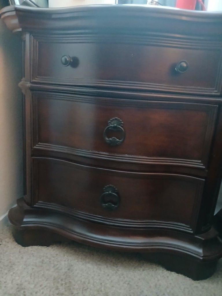Quality furniture. Comes with 2 nightstands with 2 drawers each. that have night lights on footings, marble tops and USB powered outlets that are easily accessible to keep your phone charged on nightstand. The dresser has 8 drawers, a mirror, 8 small drawers and 4 large drawers. It has a large jewelry drawer in the center. Paid over $5,000. Does not include mattress nor box spring just the hardware and furniture pieces of bedroom set. It's heavy since it's real quality materials. Must see to aopreciate