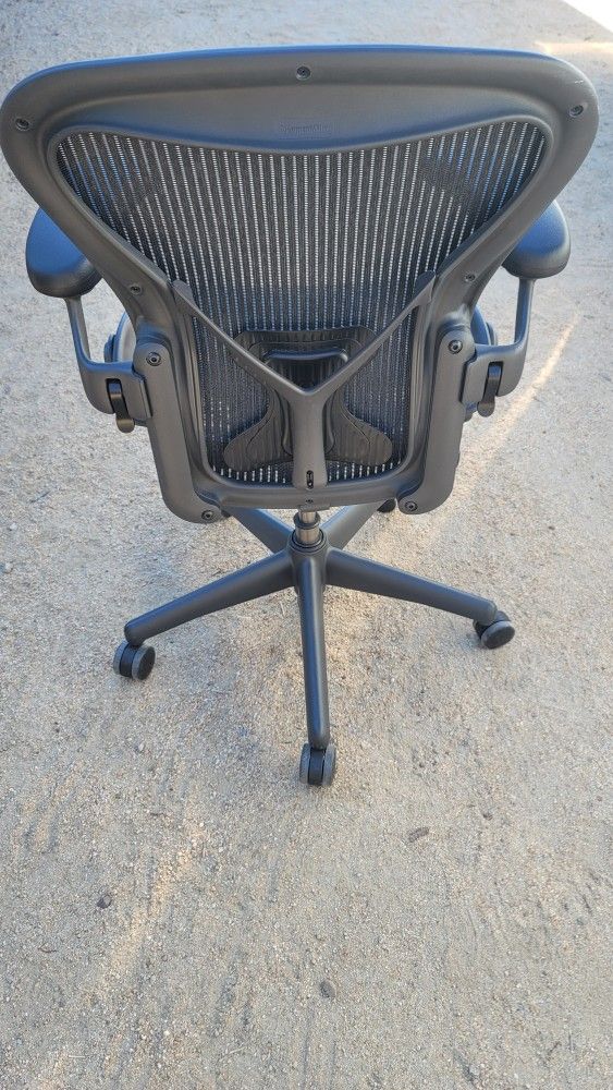 One left with posture fit lumbar support These are 400 instead of 350 because they're newer classics and they're just about perfect in really good shape with heavy duty hydraulics so they're priced accordingly Size B Newer Style Herman Miller Aeron Office Desk Chairs Has posture fit lumbar support These are newer style classics which means they have the clips for the adjustable arms. The older style have the wheels for the adjustable arms Free delivery within reason Fully loaded and just about perfect paint No blemishes or issues All mechanisms work perfectly