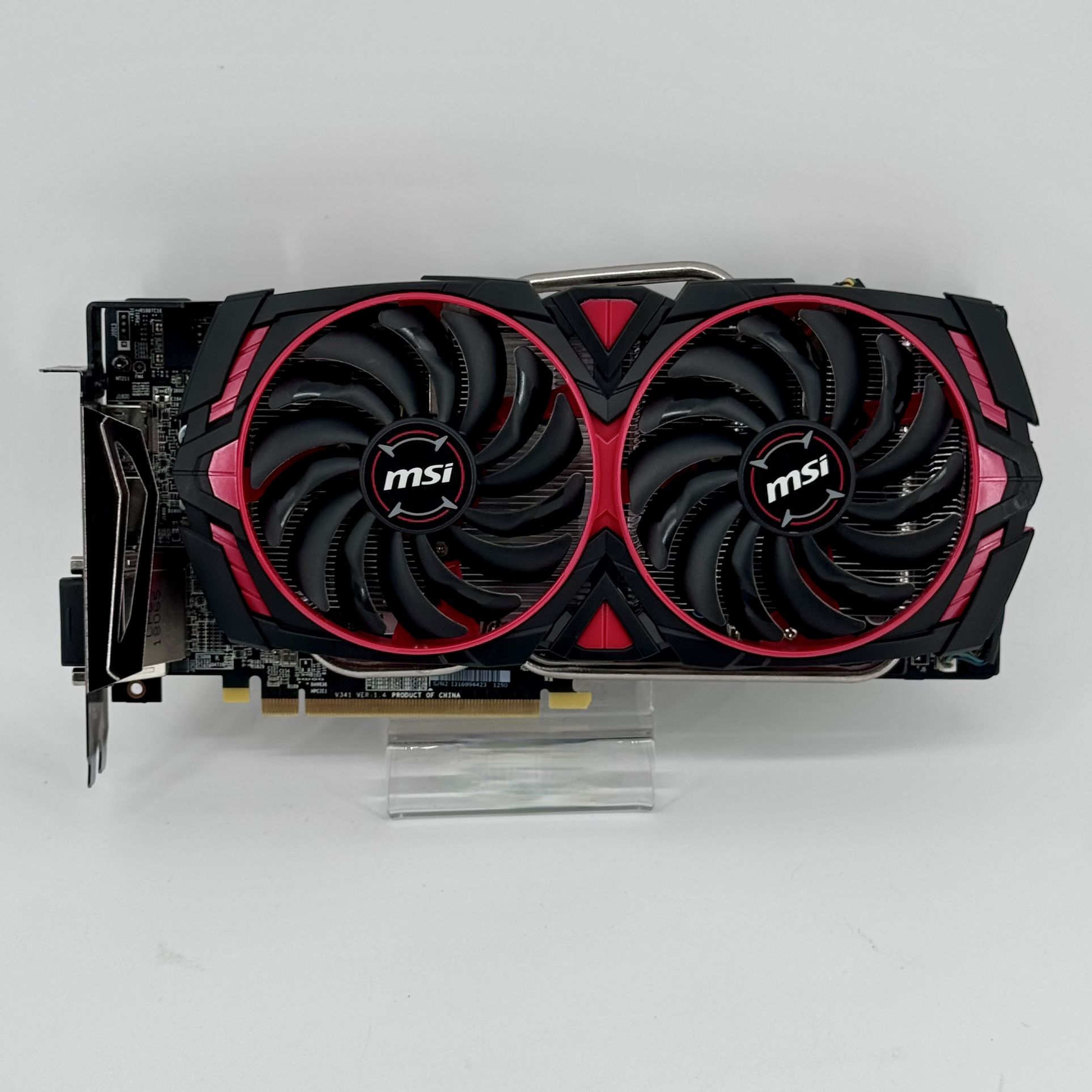 Carefully removed from a working preowned system. All components and features have been tested in full working order. BRAND: MSI MODEL: Radeon RX 580 ARMOR MK2 8G OC GPU: AMD Radeon RX 580 MEMORY: 8GB GDDR5 INTERFACE: PCIe I/O PORTS: 2x HDMI, 2x DisplayPort, 1x DVI POWER CONNECTOR: 8-pin