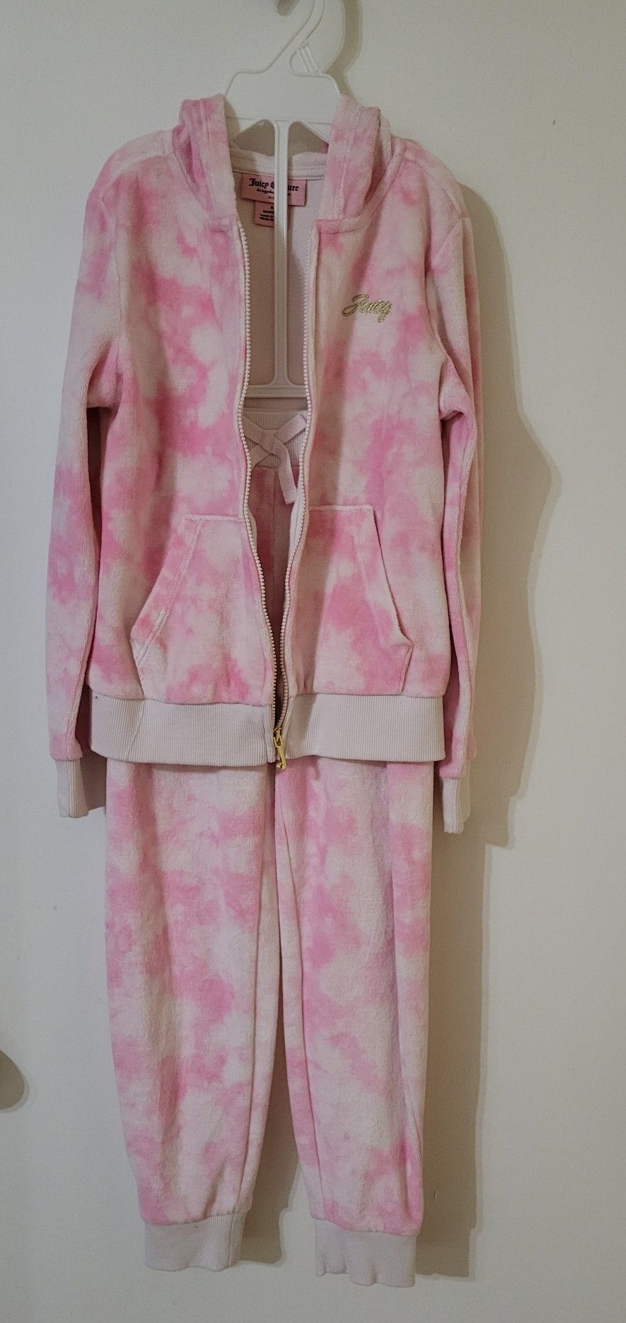 Juicy Couture Kid's Velour Track Suit In Pink Tie-dye