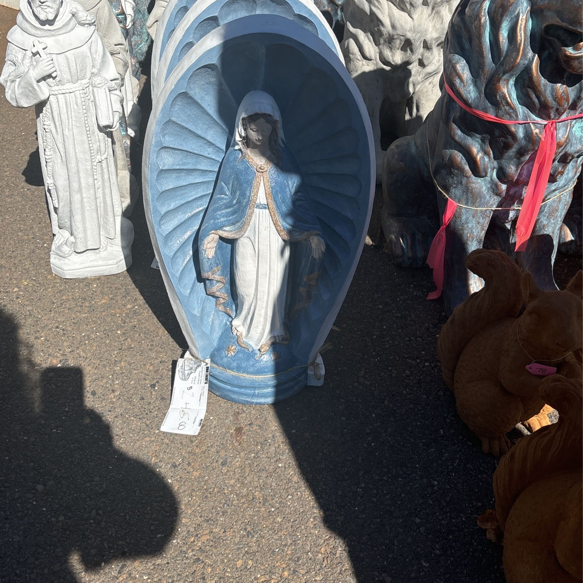 Heavy solid concrete new blessed mother with detail stain. 26” tall x 14” w Price is firm and per. European antiques and design center bryn athyn pa 19009