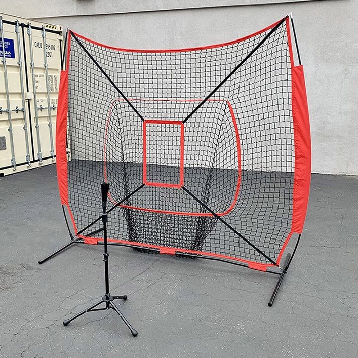 (NEW) $70 Baseball Softball (7x7’ Net & Ball Tee Set) Practice Hitting & Pitching Net w/ Carry Bag