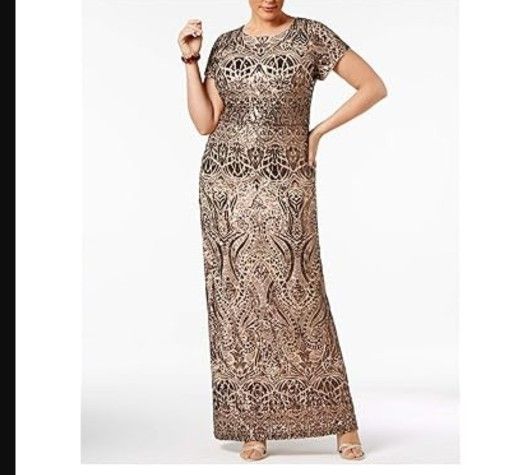 Betsy & Adam $369 Womens 16W Brown Sequined Short Sleeve Dress Sold Out