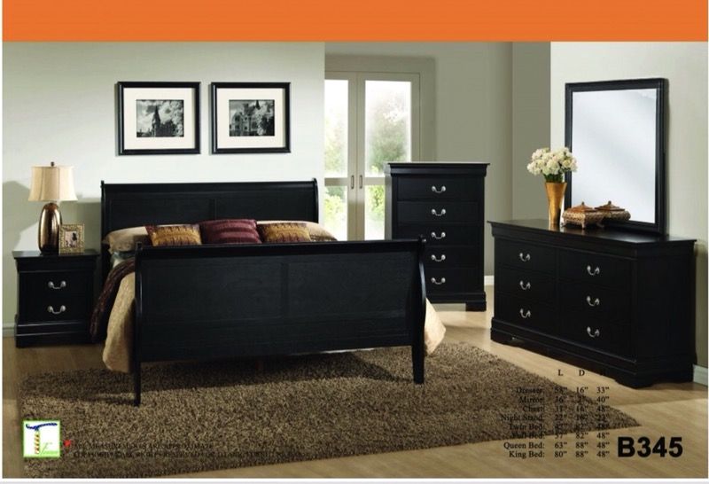 Brand new !!! Free delivery Warranty included JUST $800 for the queen set Included Queen bed Dresser Mirror Chest 1 nightstand Mattress + box spring Also available in cherry or brown King set is $150 more