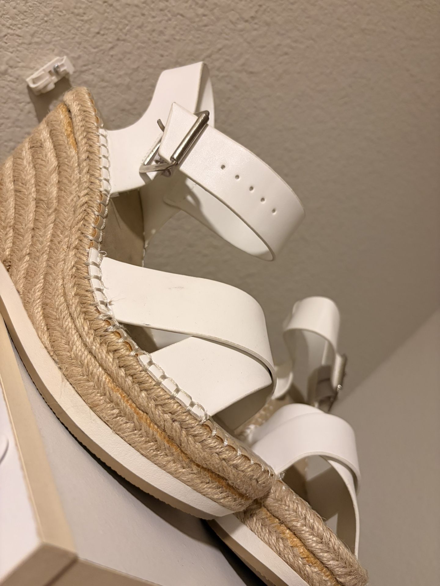 White leather espadrille wedge sandals - all man made material #summer #heels