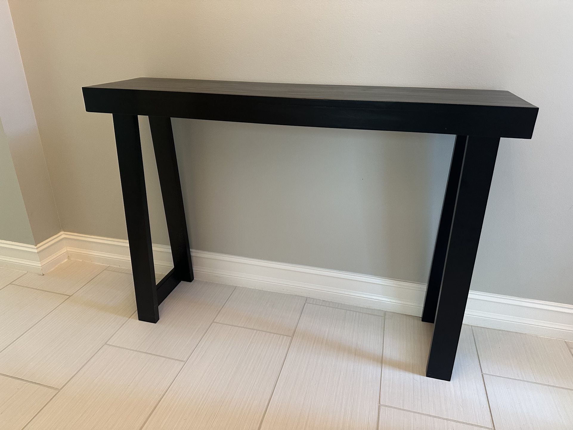 Sleek, sturdy black console/entryway table in excellent condition. Clean lines and modern style. Perfect for an entryway, hallway, or behind a sofa.