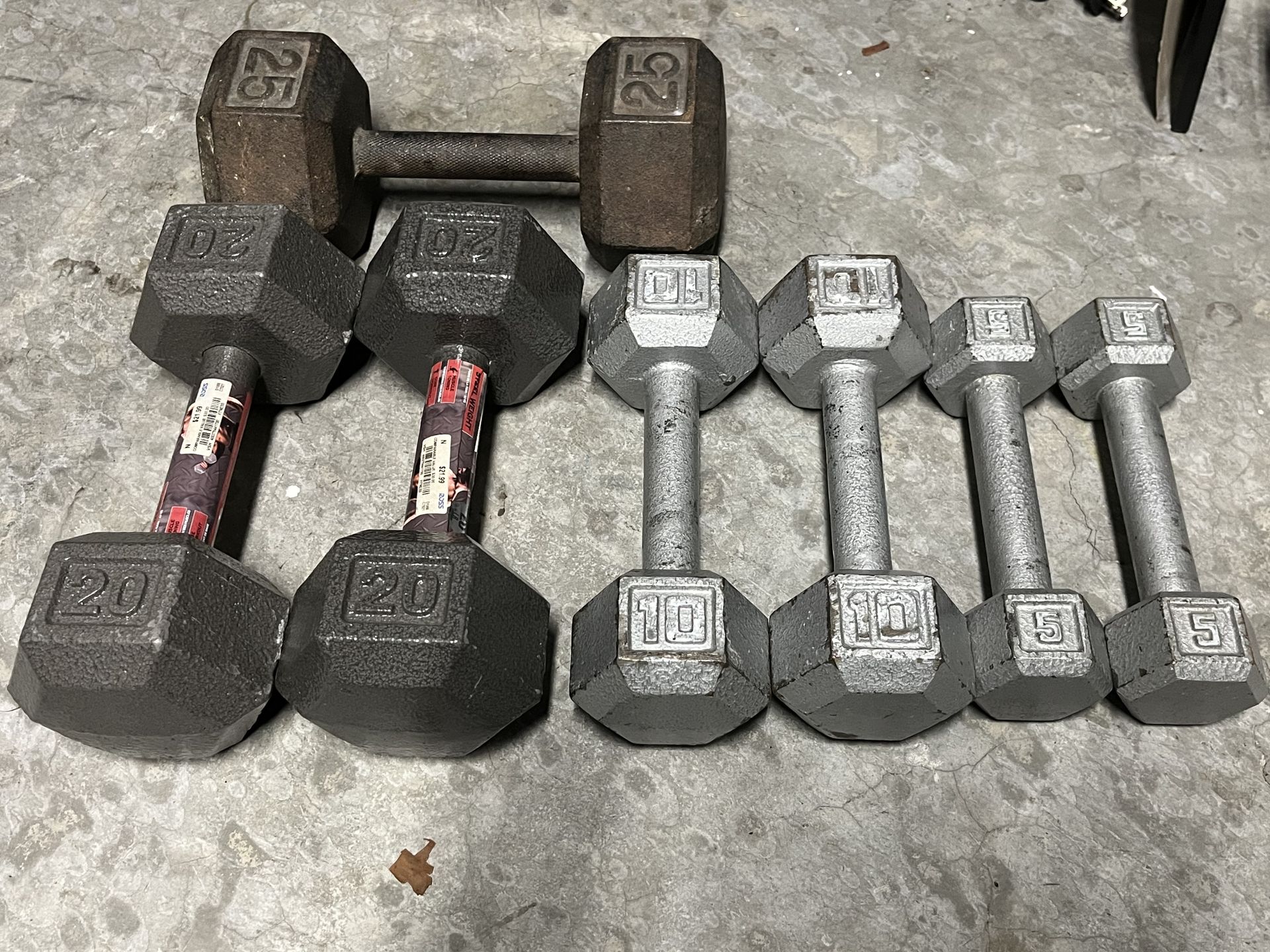 2 x 20lb 2 x 10lb 2 x 5lb 1 x 25lb Price is for all barbells