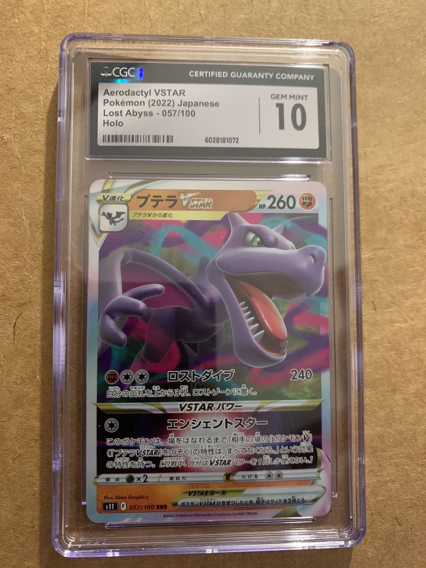 2022 Pokémon Aerodactyl VSTAR Japanese Lost Abyss - 057/100 Holo CGC 10