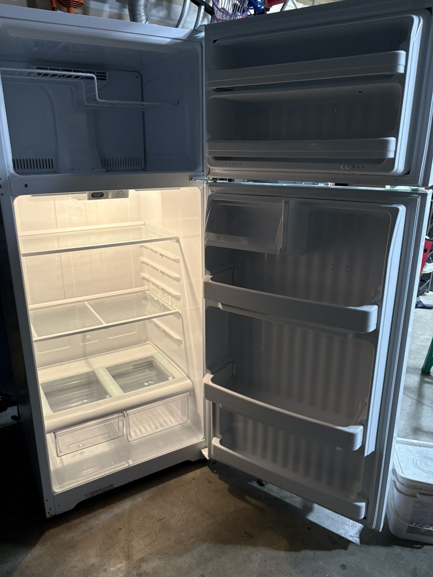 Great working fridge, both freezer and refrigerator works with no issues. Very reliable. Clean and ready. Good for garage or indoor use. 67”H x 28”W x 31”D I can deliver upright for a small fee if needed.