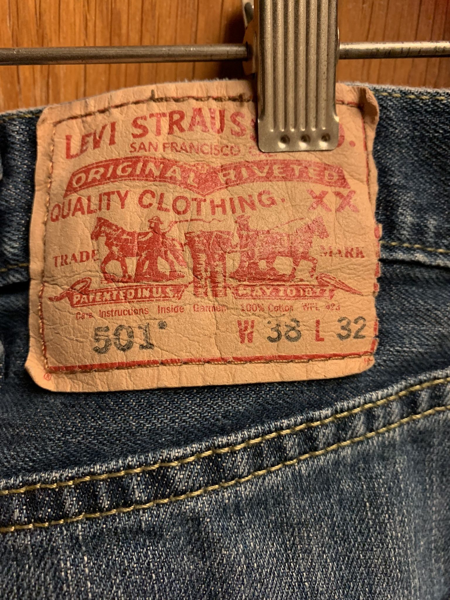Men’s Levi 501 jeans button fly blue denim men’s size 38×32 great condition gently used