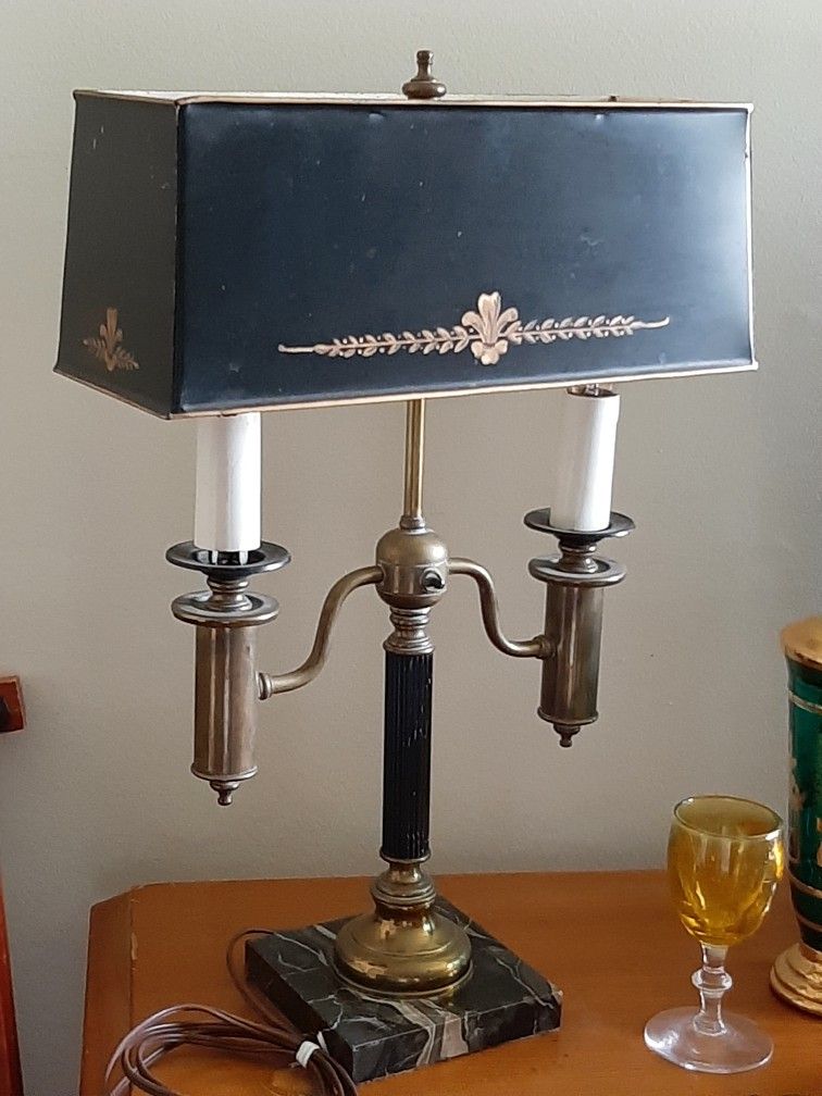 Vintage metal brass and marble working working 1930s Bertie's American metal lamp shade working great desk lamp mantle light