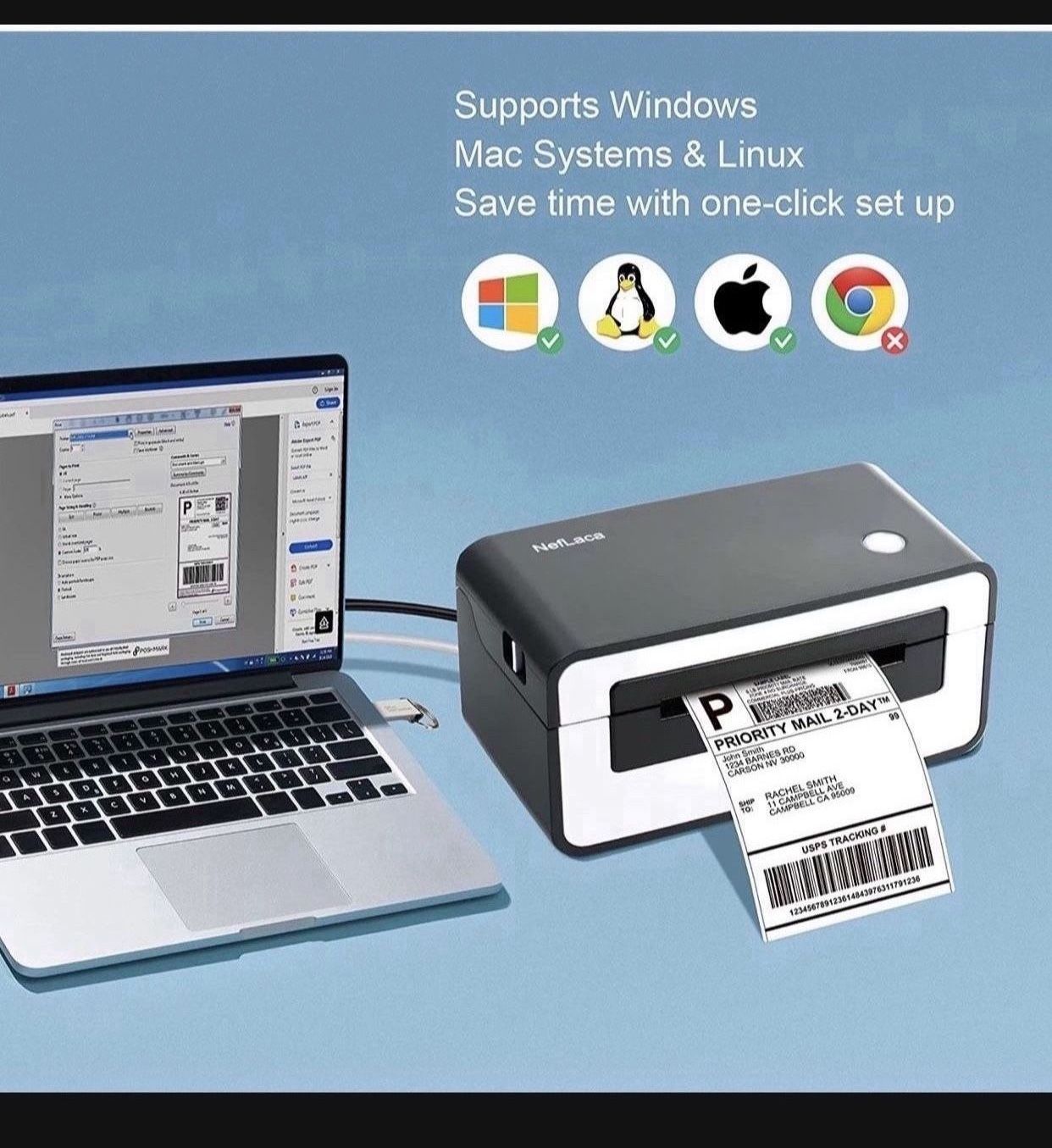 NefLaca Thermal Label Printer,4x6 High Speed USB Shipping Label Printer Commercial Direct Thermal Label Maker One Click Setup Compatible with Amazon,