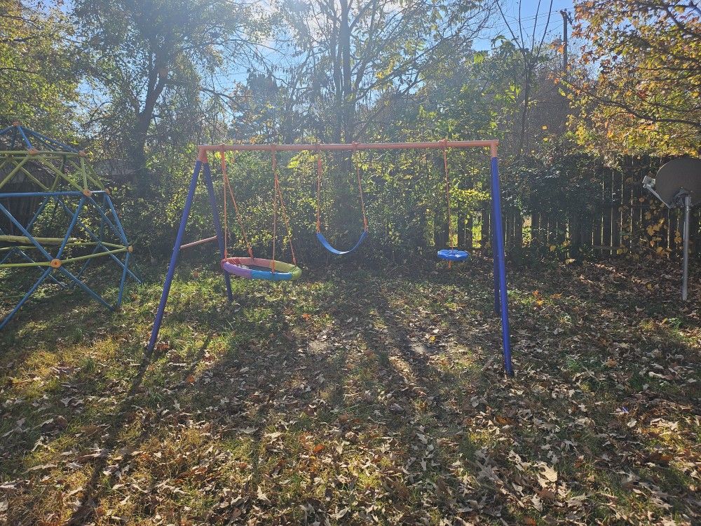 Saucer swing, regular swing, and disc swing wt adjustable clips to rearrange and lower or raise.