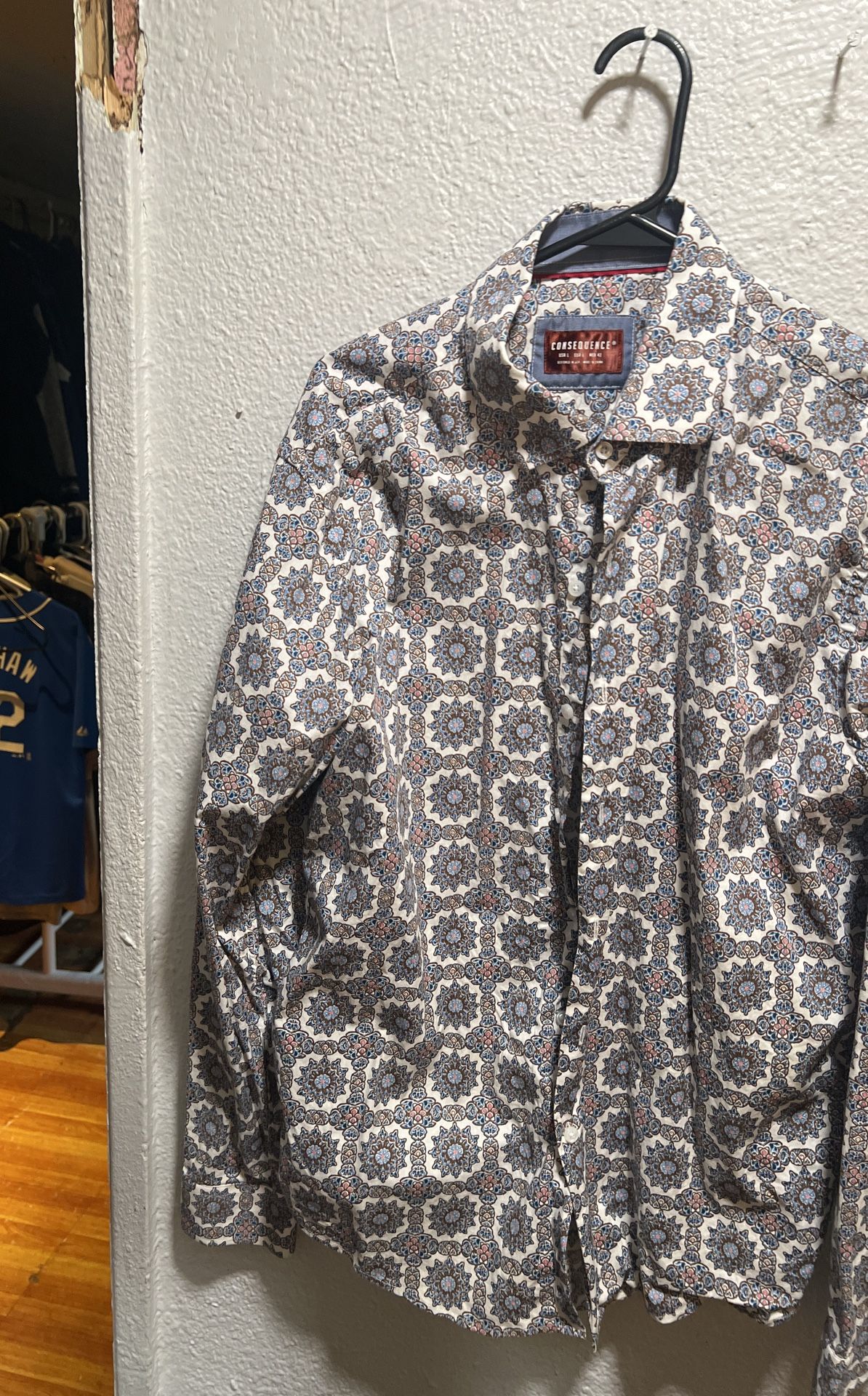 Consequence Shirt Mens Large Mosiac Button Up Long Sleeve Flip Cuff Slim Fit