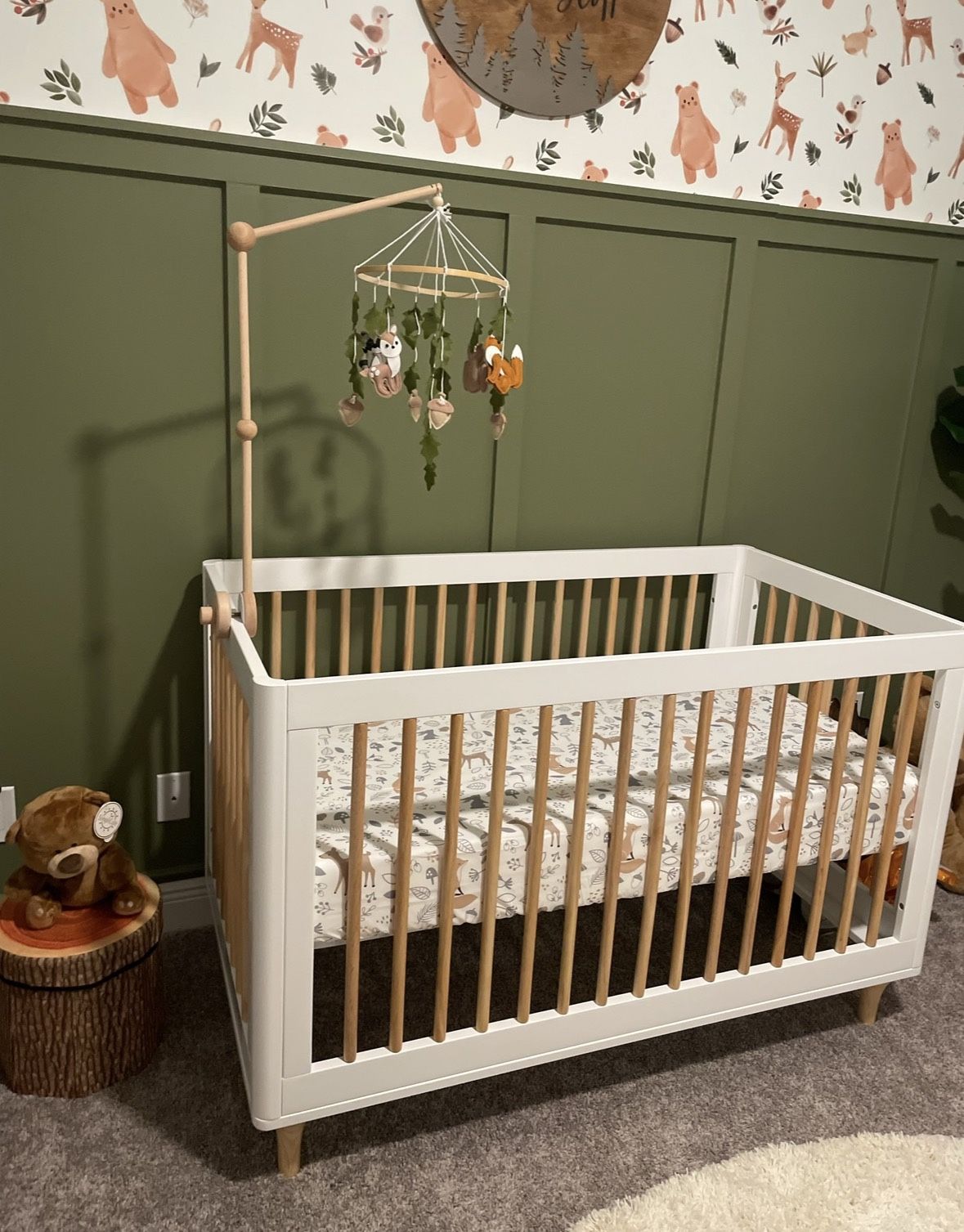 Babyletto Lolly 3-in-1 Convertible Crib! This has been a fantastic crib for our baby to toddler. Great design and color/finish we bought it from Pottery Barn and the quality is fantastic, still looks like new! The crib has all the parts and attachments for all stages of baby to toddler.