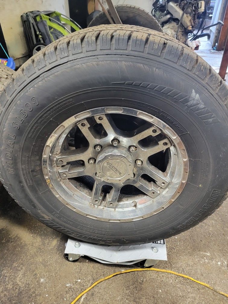 I'm selling 3 chevy 8 lug wheels an tires again I only have 3 very good tread