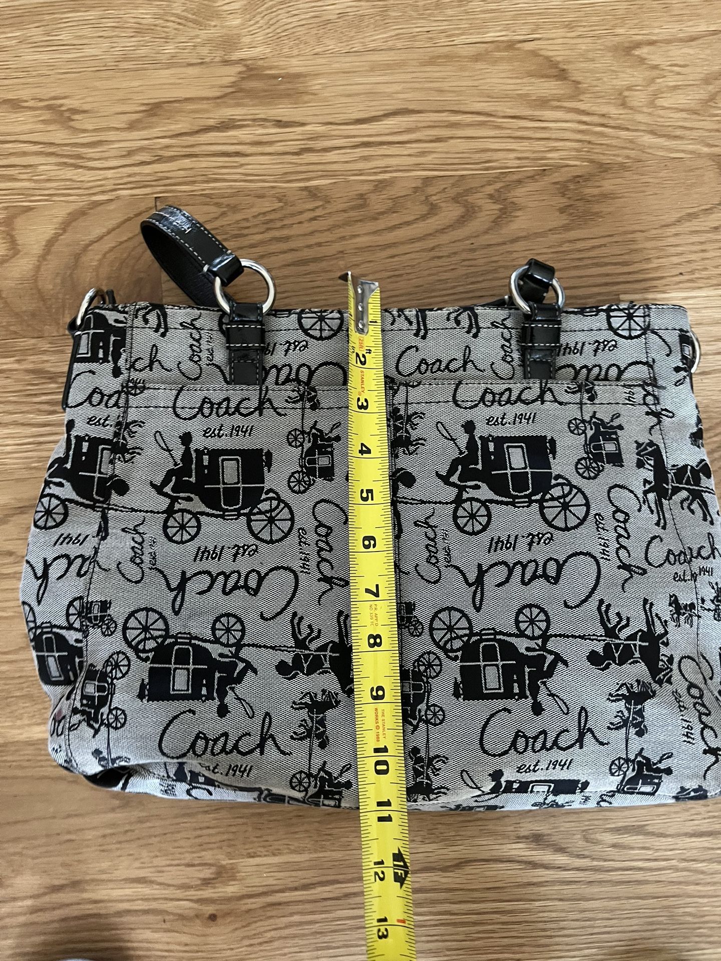 COACH Horse & Carriage Canvas Leather Trim LEAH Shoulder Bag Carryall Tote Gry