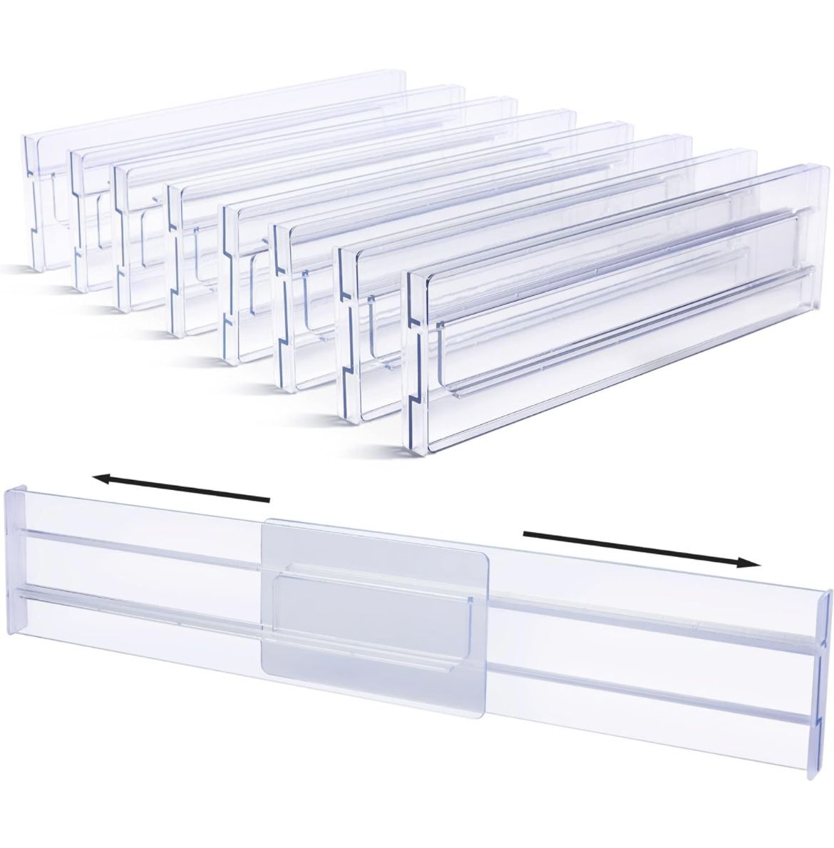 Drawer Dividers Organizers 8 Pack, Adjustable 3.2" High Expandable from 12.2-21.4" Kitchen Drawer Organizer, Clear Plastic Drawers Separators for Clot