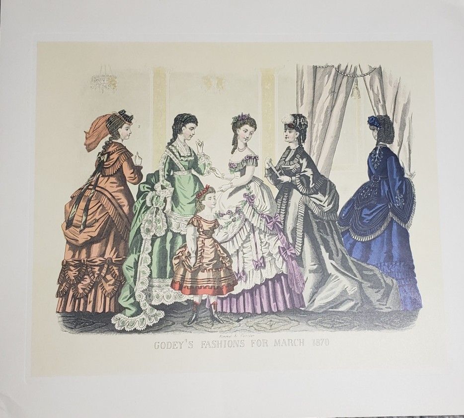 Godey's Fashions for March 1870 Illustration Print Poster. Unframed