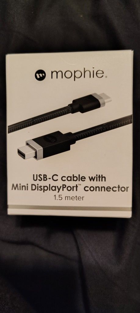 New in box. Mophie USB-C with mini display port connector. 4k compatible. 1.5 meter. Black. These are typically used to connect modern computers, laptops, and tablets (with USB-C ports) to older devices that use the smaller 5-pin Mini-USB port. It is primarily used for transferring data and charging devices like cameras, game controllers, MP3 players, and GPS units. I have 16 of these. $5 each. Price drop. Two for $5