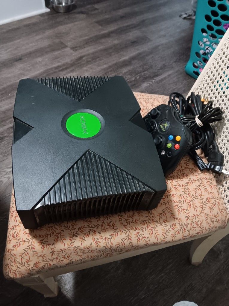 Original Microsoft Xbox Console: The classic black console, nicknamed "The Duke." Original Xbox Controller: Fully functional and ready for action. All Necessary Cables: Power and AV cables are included, so you can hook it up immediately. Tom Clancy's Ghost Recon: Island Thunder Game (CIB): Complete with the case and manual, this Platinum Hits edition is a must-have tactical shooter. Condition & Details: Console: Good pre-owned condition, especially for a classic console of this age. Controller: Tested and all buttons/sticks work wear on wire a needa new dongle attachment to play doesn't connect currently Game: Disc is clean, case is intact, and game has been confirmed to load and play.
