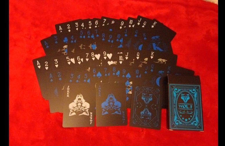 BLUE*WOLF HEAD Playing Cards Material; PVC Plastic Size; 3.51"× 2.53" inch Container; Box Waterproof* Washable* Non-Slip Pick-Up in Gladstone