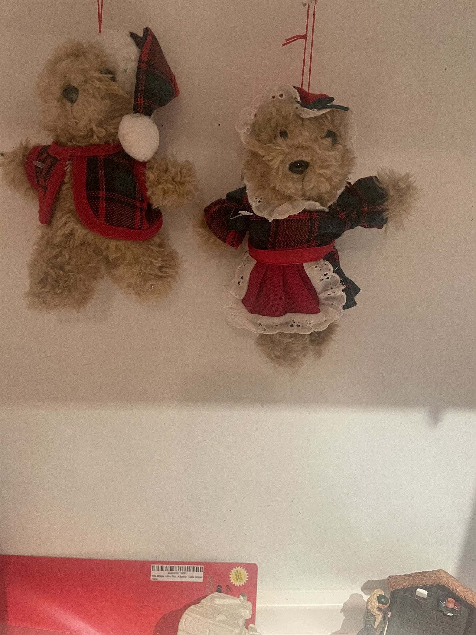 Vintage Christmas Teddy Bear Plaid Red Ornament
