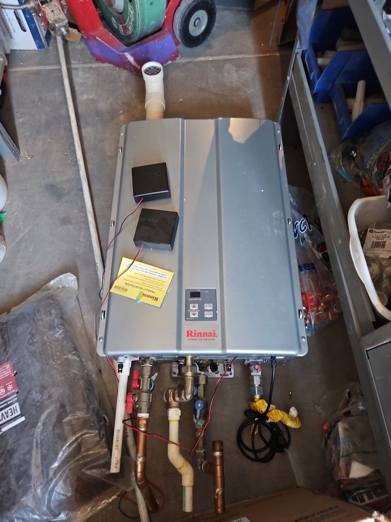 Tankless Rinaai gas water heater. Works perfectly I just can't use it at my house It is equipped with wifi controls